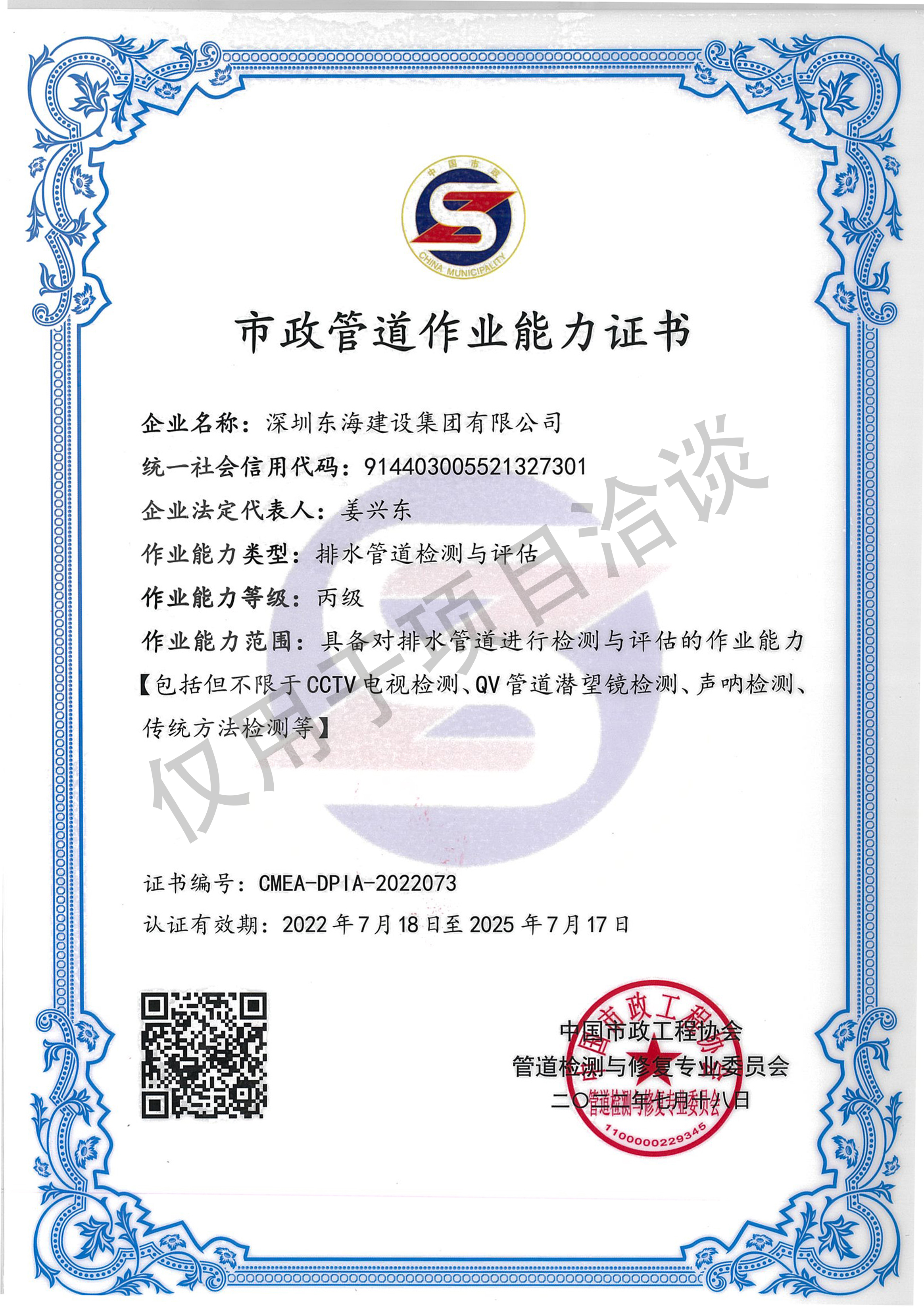 市政管道作業(yè)能力證書
